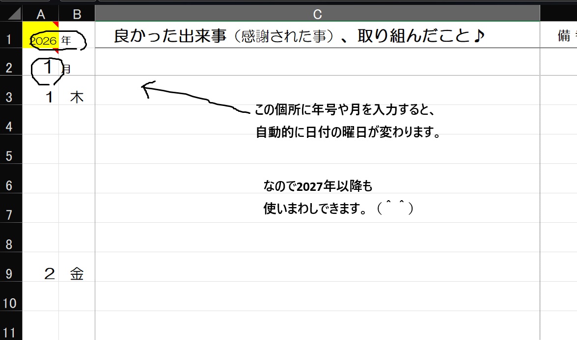 ウェブデザインの裏側 2025.12.21 サクセスダイアリー/2026年に向けて 今回、自身も使っているサクセスダイアリーをアップロードいたしました。 SD2026 (33 ダウンロード ) エクセルファイルですので、ご自由にお使いください。 ウェブデザインの裏側, Excel-Tips, 自己啓発 シーサイドネットcsidenet 倒産? 前の記事 クリスマスに・・ 次の記事